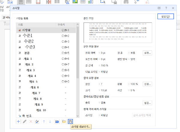 현재 문서에 정의된 스타일을 .sty 파일로 저장합니다.