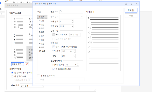 여기서 기존 번호를 고를 수도 있고, 사용자 정의로 완전히 새로운 개요 체계를 만들 수도 있습니다.