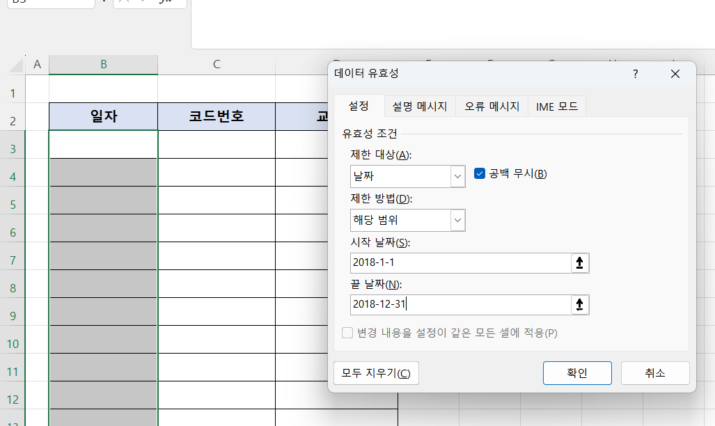 엑셀 날짜 기반 데이터 유효성 검사는