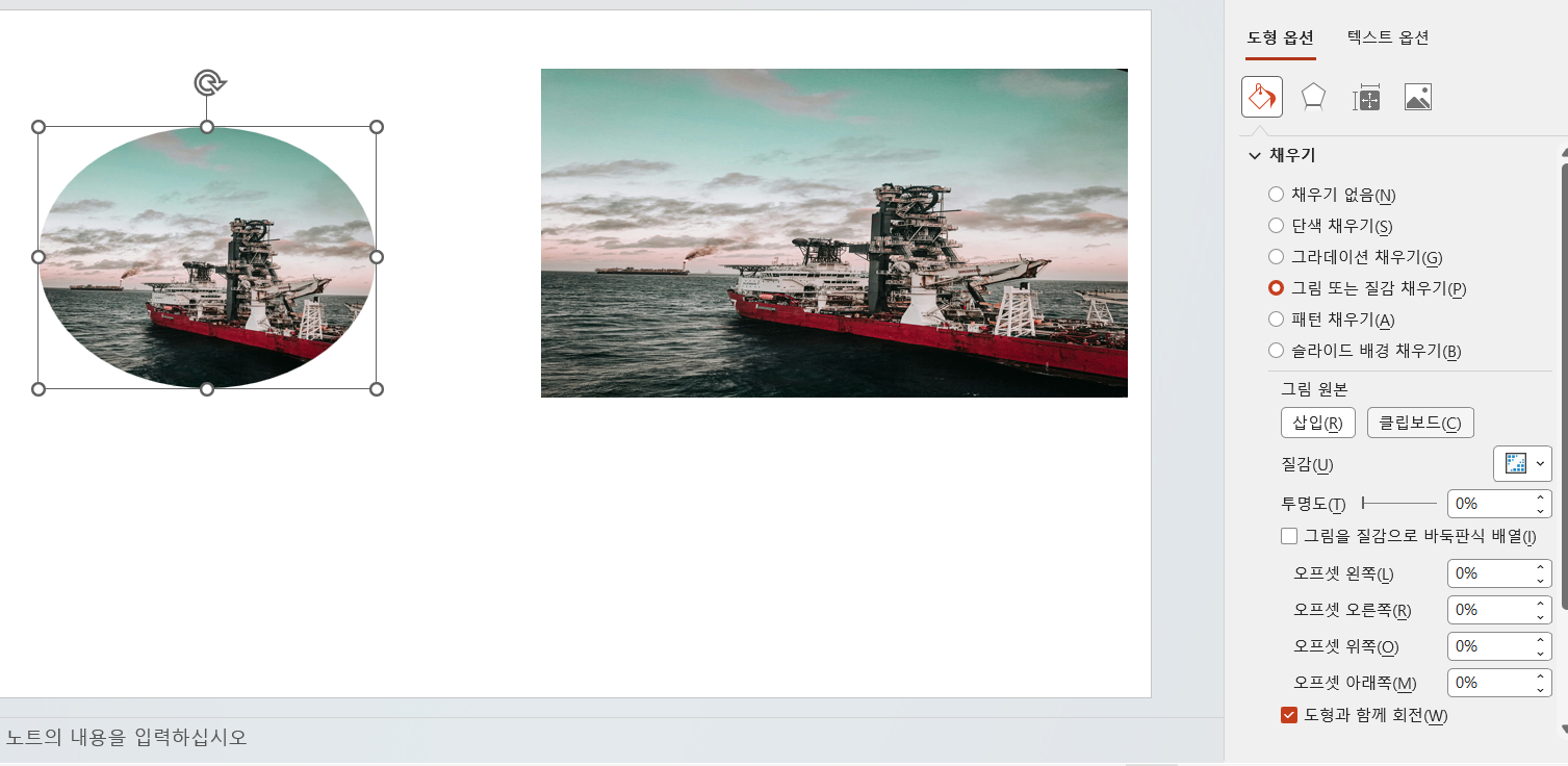 슬라이드에서 이미지를 단순히 올리는 대신, 도형 안에 이미지를 채우면 화면이 훨씬 정돈되어 보입니다.