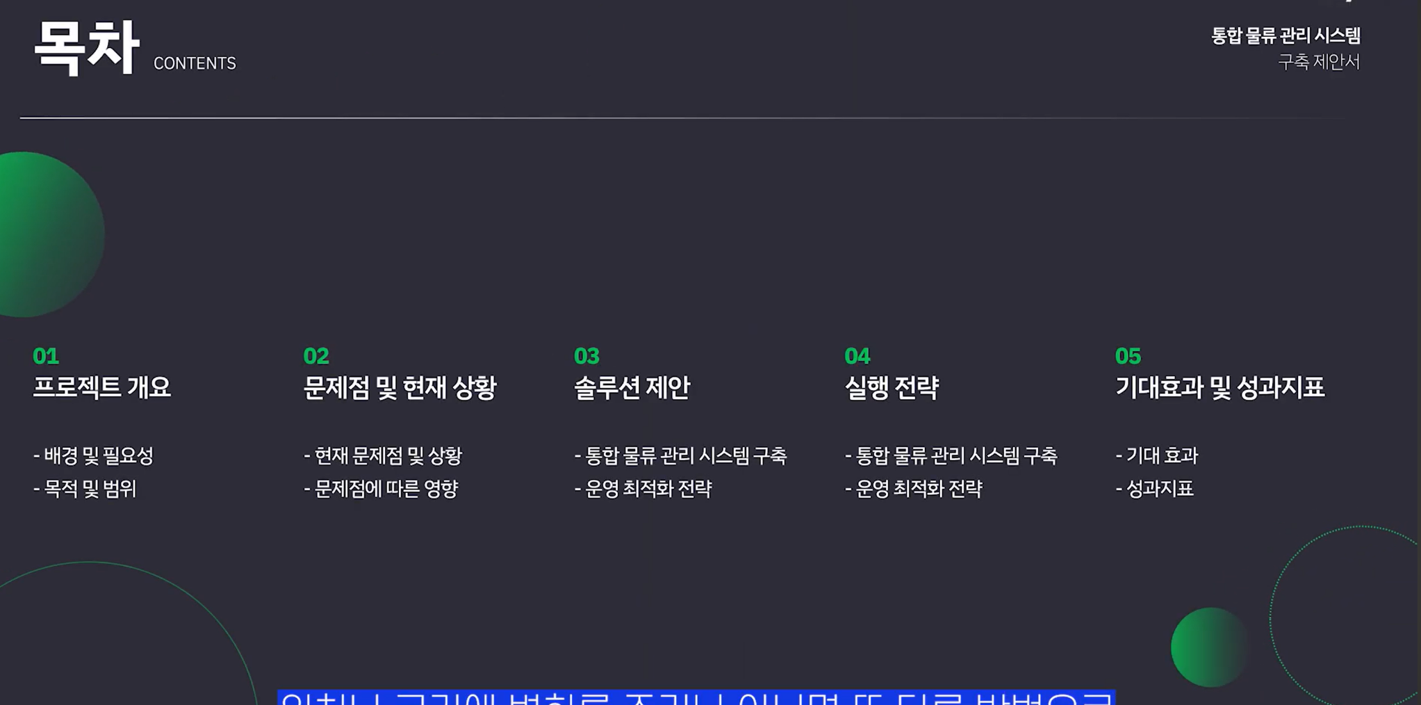 목차 슬라이드는 발표 흐름을 보여주는 중요한 장면이다.