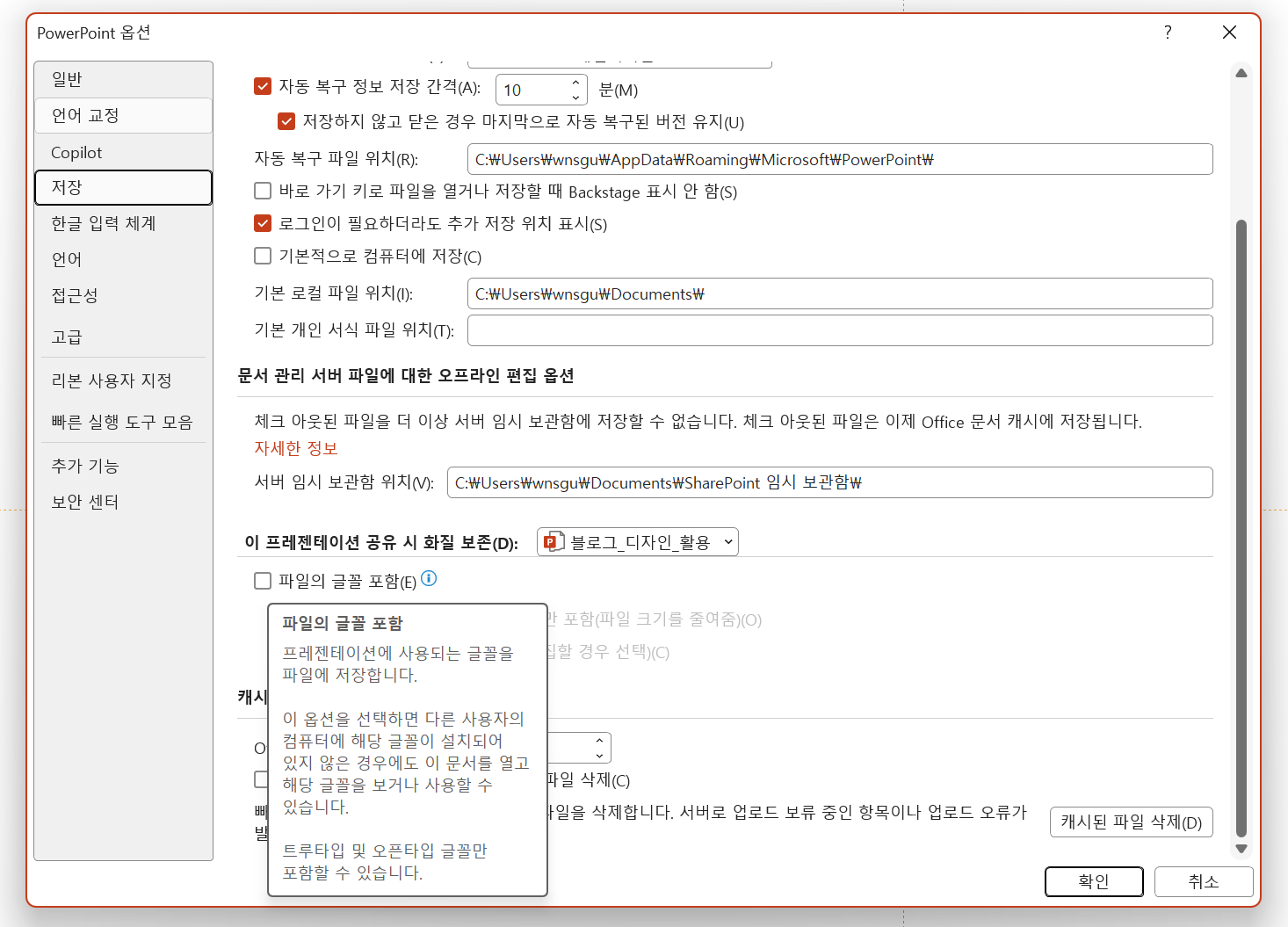 5. 최종본 전달 시 글꼴 포함 옵션 설정하기