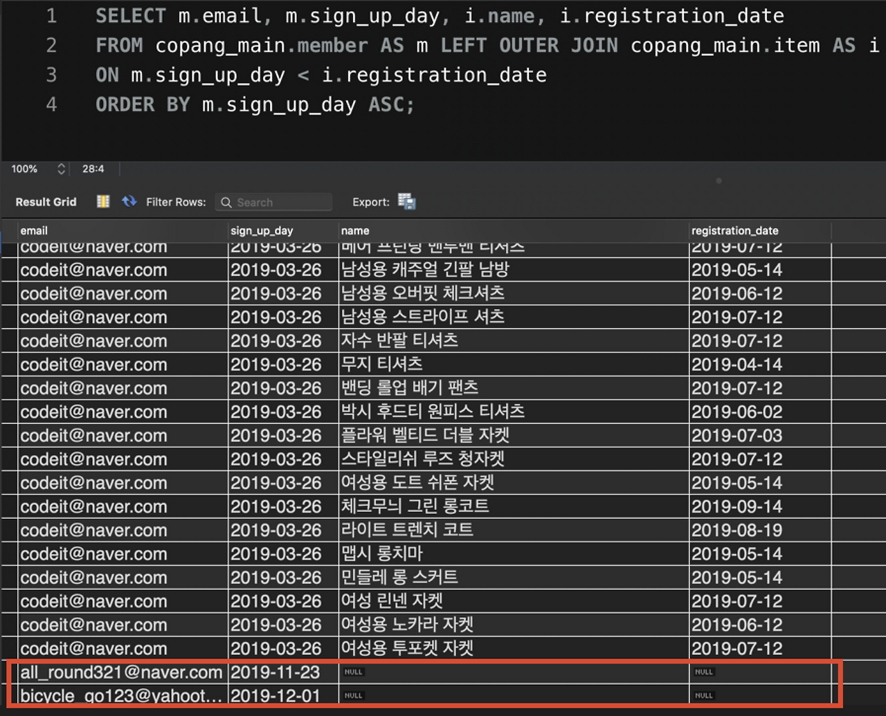 이렇게 하면 특정 회원이 가입한 이후에 올라온 상품 목록을 볼 수 있습니다.