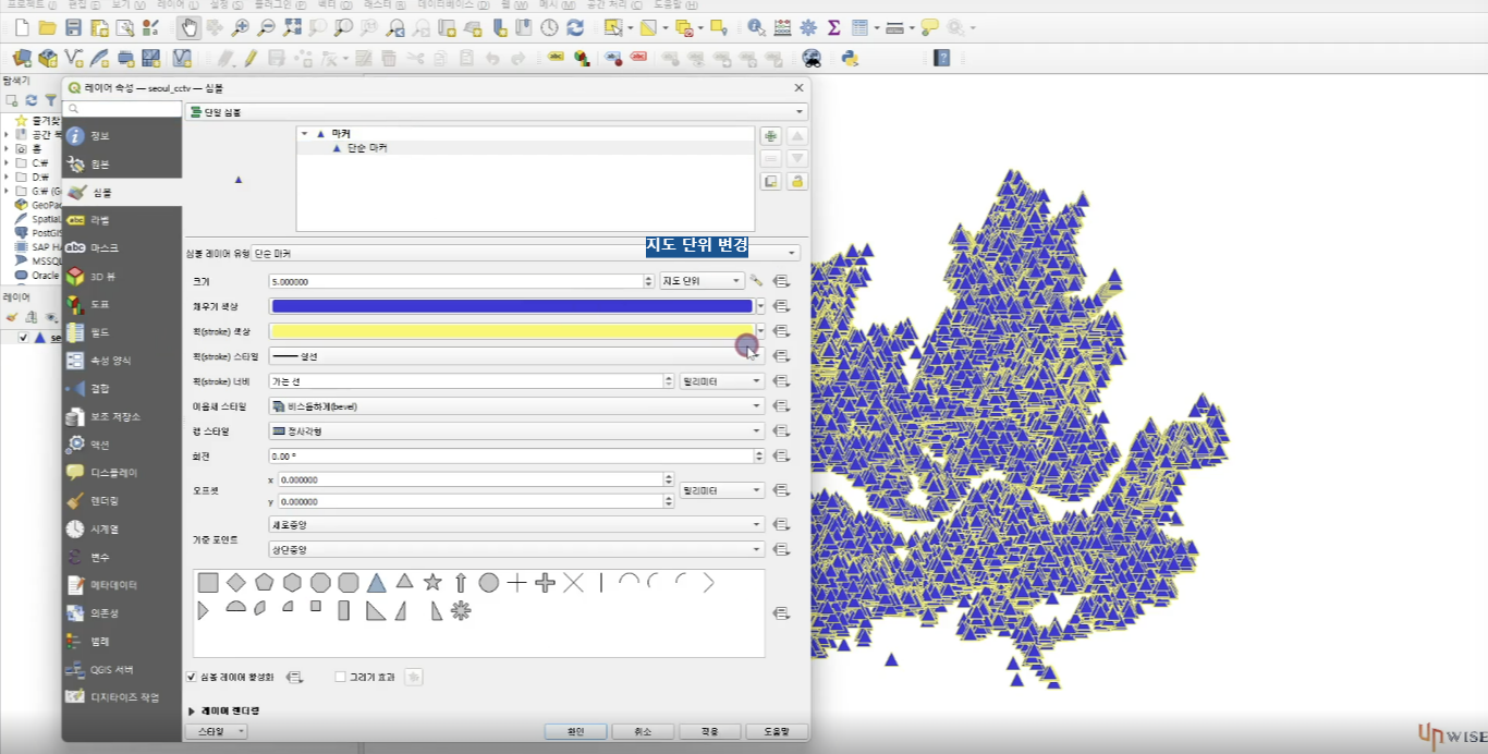 QGIS에서 포인트 심볼을 스타일링할 때