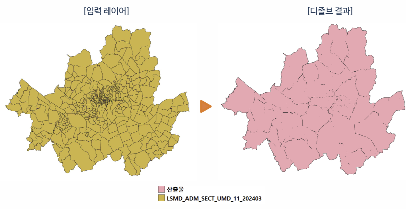예를 들어, 행정동 단위의 경계를 구 단위 또는 서울시 전체 하나의 영역으로 묶고 싶을 때 활용합니다.