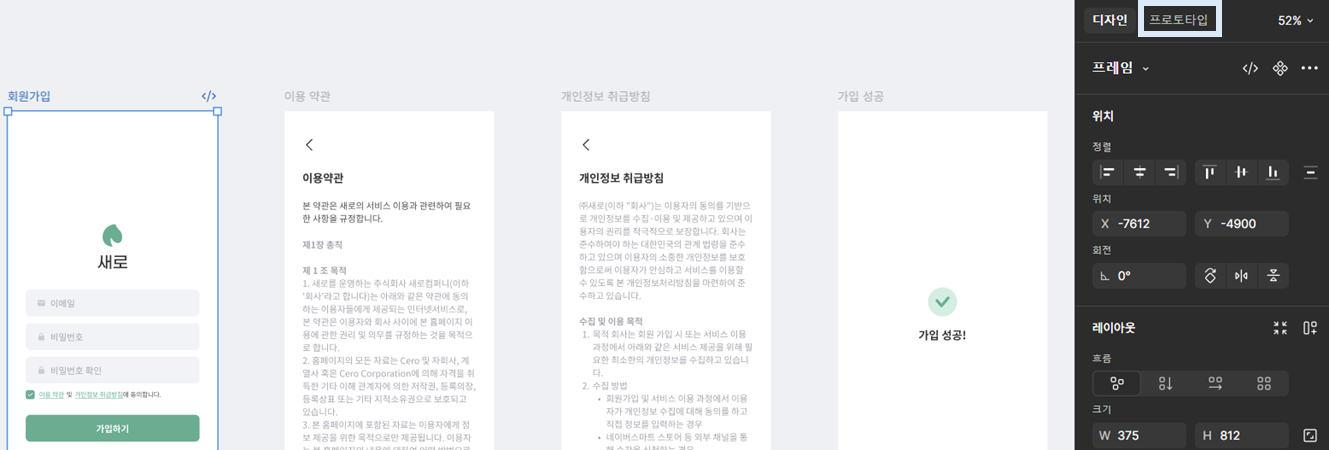 프로토타입은 화면 간 ‘이동’을 설계하는 것이고,