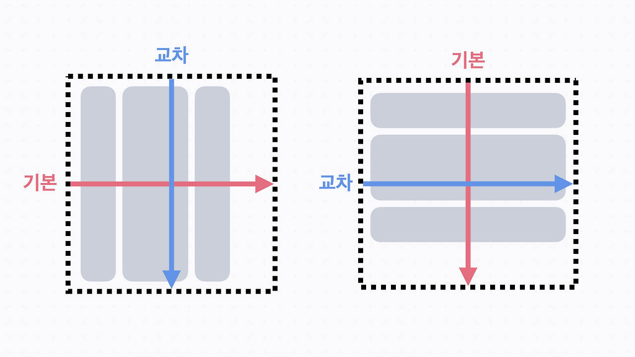 - 정렬 기준은 주축(main axis) 과 교차축(cross axis)